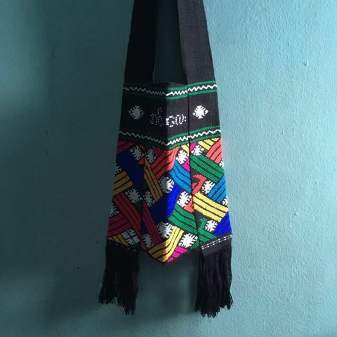 ミャンマー 部族 エスニック 刺繍 サイケデリック 斜めがけ ショルダーバッグ サコッシュ フリンジ メンズ レディース ユニセックス 民族 カジュアル トライバル カラフル 新品 美品 黒