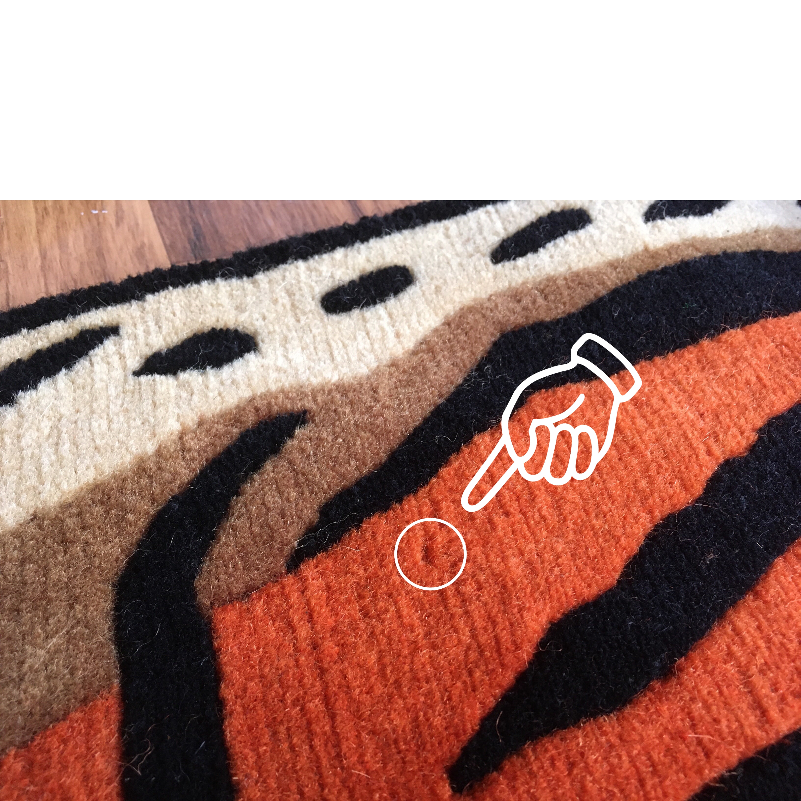 生産地であるネパールの販売店を回り、郊外の工房を何度も訪問し、弊店が時間をかけてセレクトした一点もののタイガーラグです。