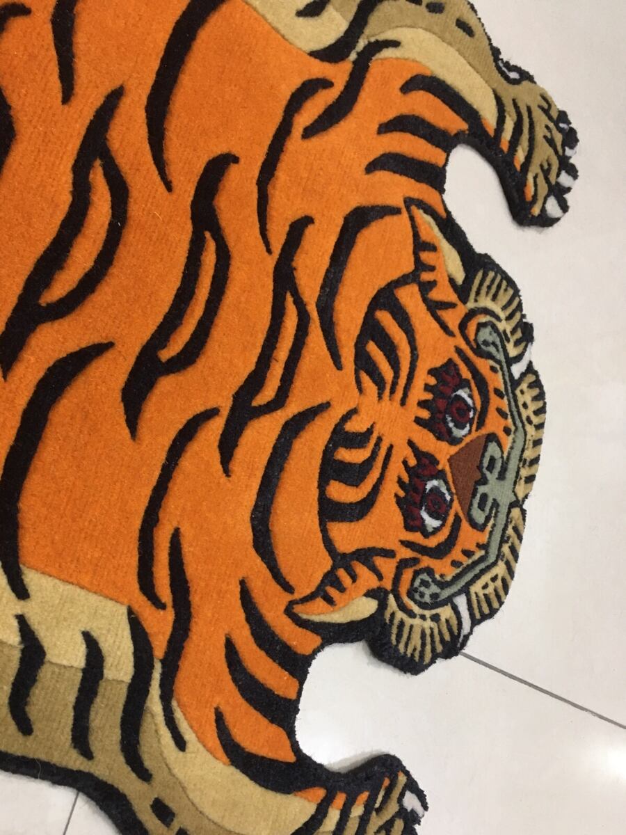 チベタンタイガーラグ S WOOL ★ TIBETAN TIGER RUG 【 小 本物 ウール製 ヒマラヤンオレンジ チベット文化圏 ネパール産 ハンドクラフト 高級絨毯 インテリア 産地直送 通販 】HIMALAYAN ORANGE