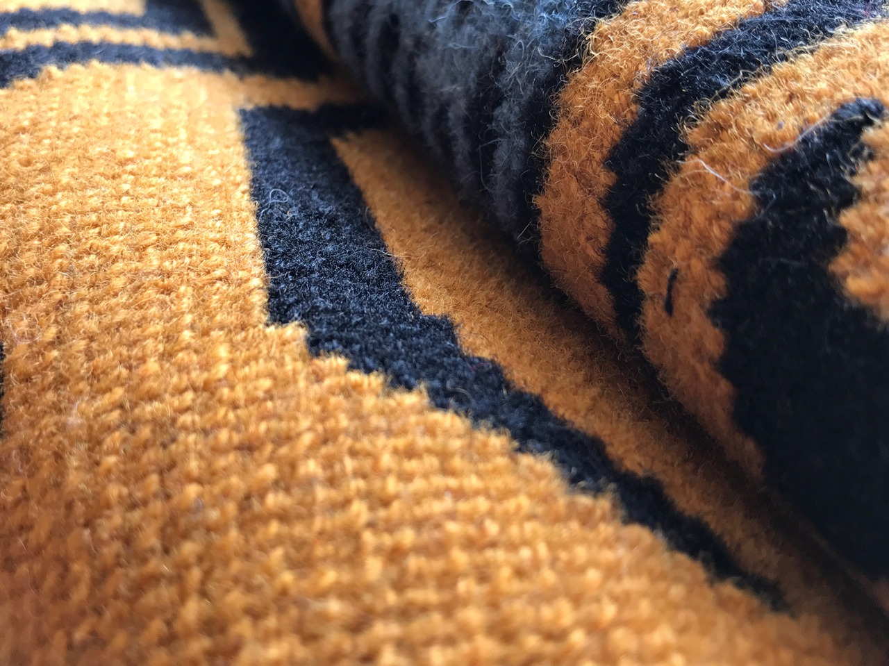 機械に頼らない手織りの為、一点一点、細部のデザインの表情が異なります。