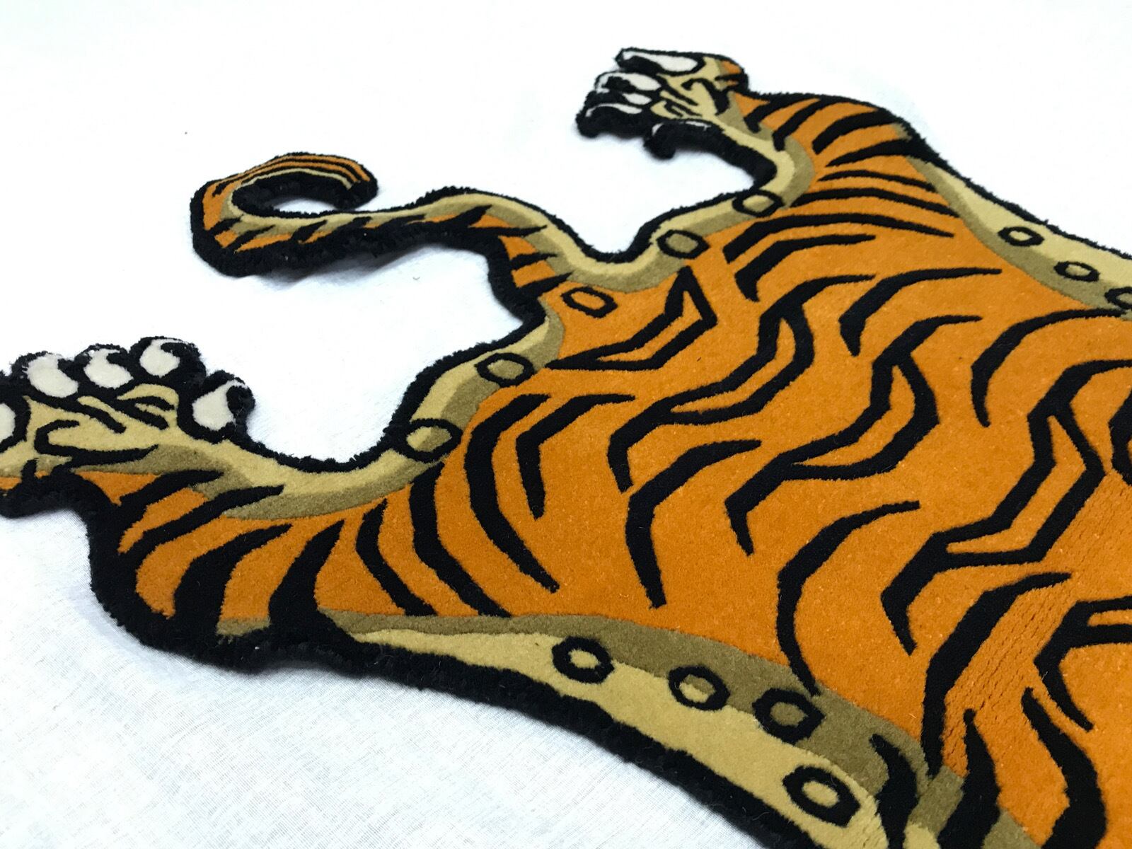 チベタンタイガーラグ S WOOL ★ TIBETAN TIGER RUG 【 小 本物 ウール製 ヒマラヤンオレンジ チベット文化圏 ネパール産 ハンドクラフト 高級絨毯 インテリア 産地直送 通販 】HIMALAYAN ORANGE