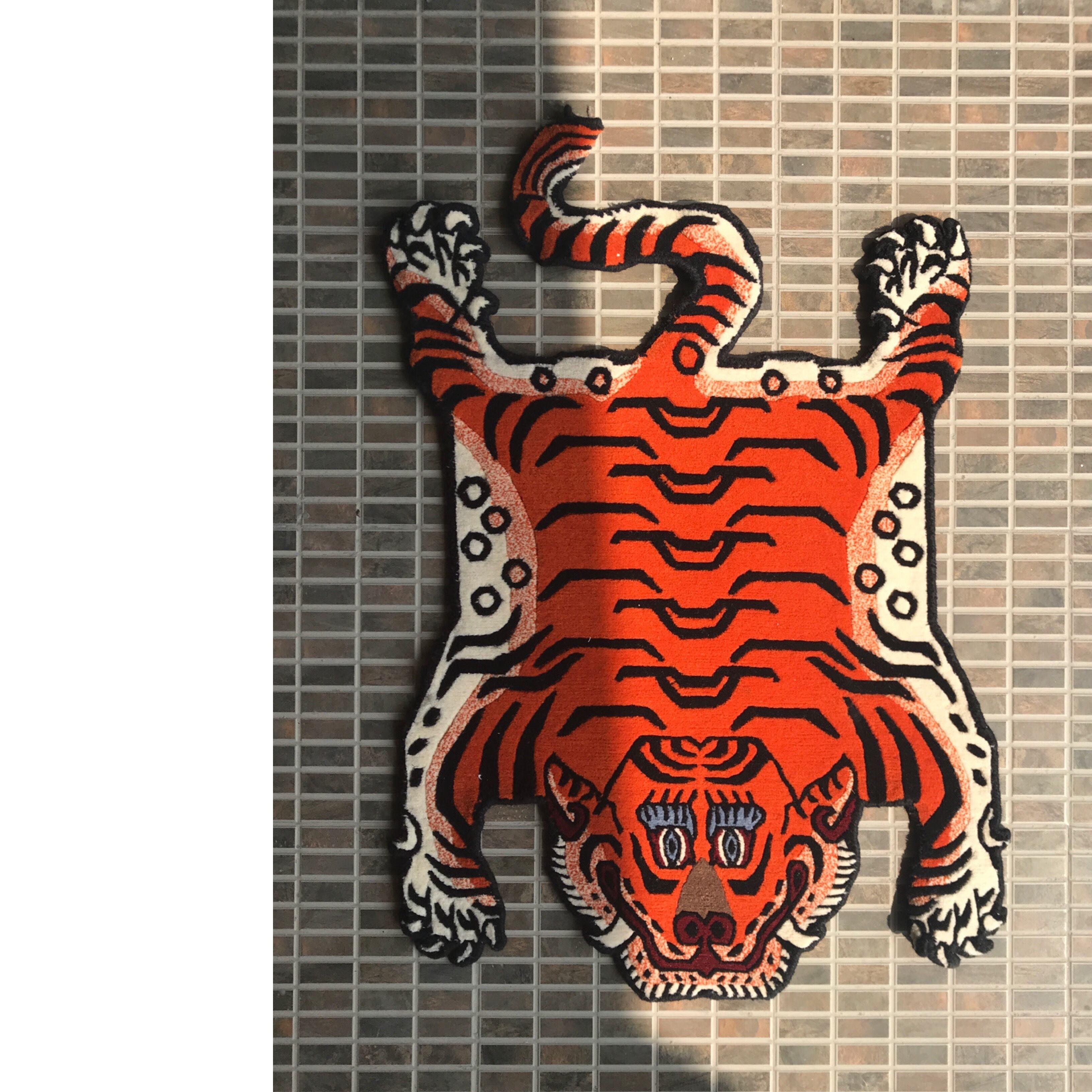 チベタンタイガーラグ S WOOL ★ TIBETAN TIGER RUG 【 小 本物 ウール製 ヒマラヤンオレンジ チベット文化圏 ネパール産 ハンドクラフト 高級絨毯 インテリア 産地直送 通販 】HIMALAYAN ORANGE