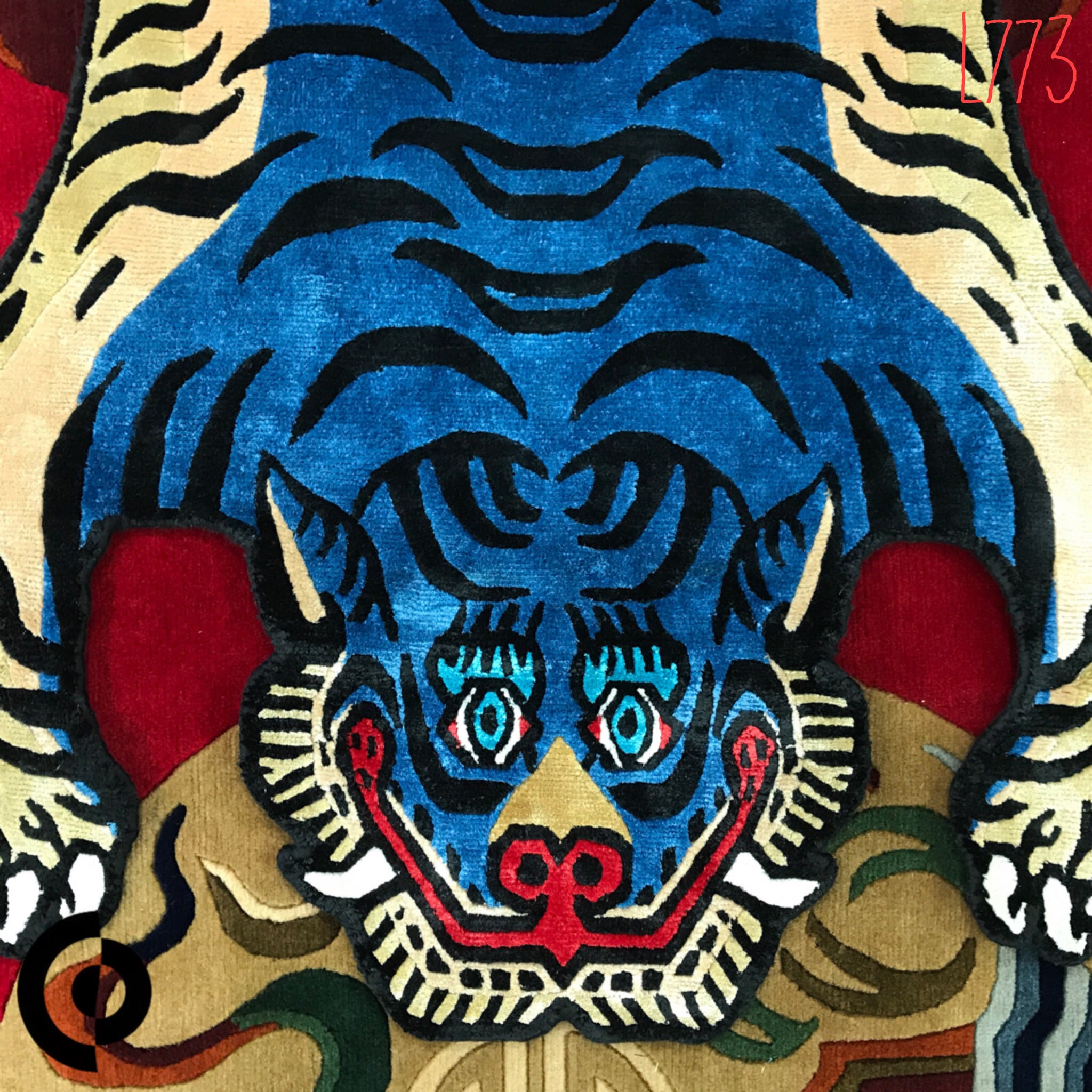 L 773 チベタンタイガーラグ VISCOSE ★ TIBETAN TIGER RUG【 大 本物 ヴィスコース製 ヒマラヤンブルー チベット文化圏 ネパール産 ハンドクラフト 高級絨毯 インテリア 産地直送 通販 フロアマット 】HIMALAYAN BLUE