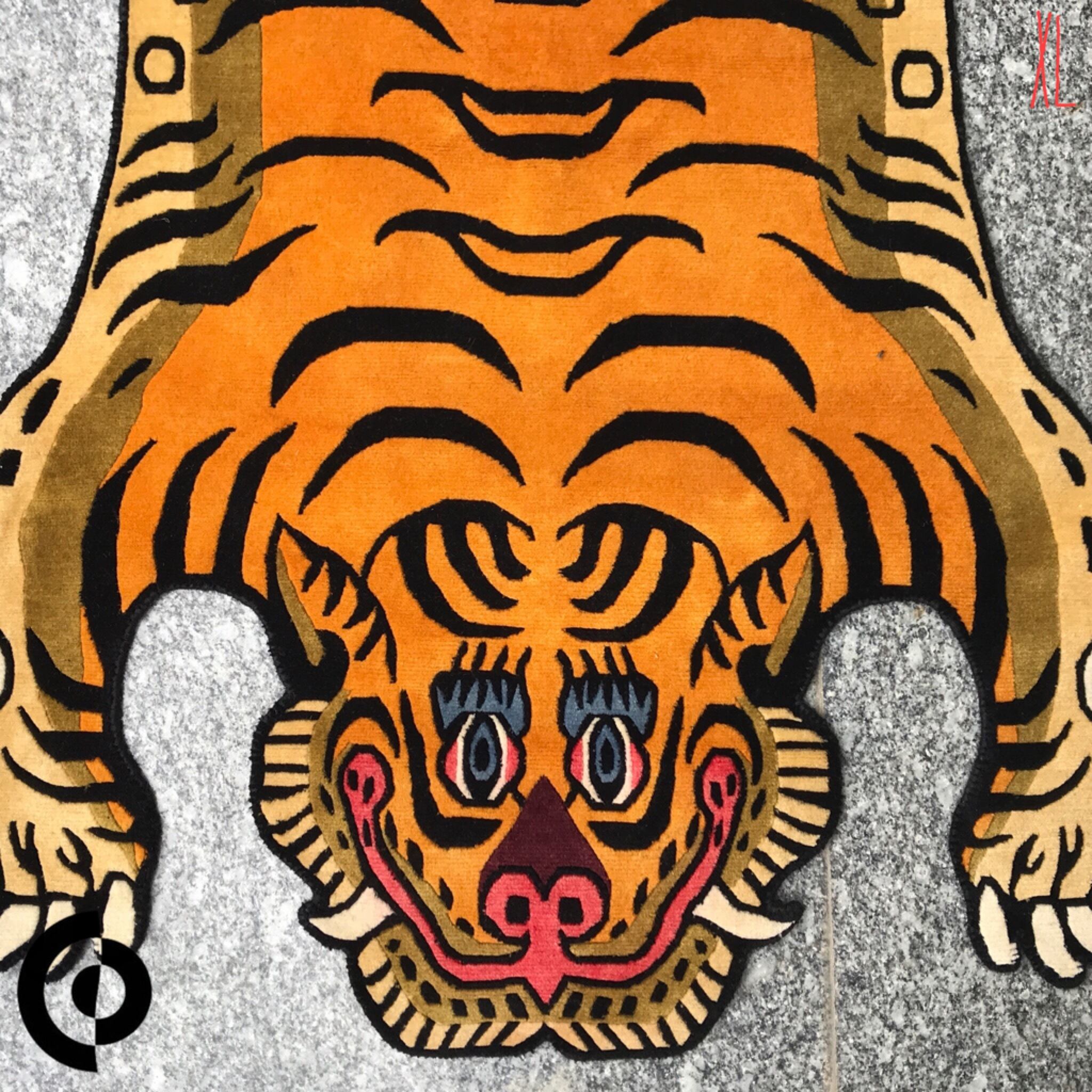 【訳アリ・特価】XL チベタンタイガーラグ WOOL ★ TIBETAN TIGER RUG【 大 本物 ウール製 ヒマラヤンライトオレンジ チベット文化圏 ネパール産 ハンドクラフト 高級絨毯 インテリア 産地直送 通販 フロアマット 】HIMALAYAN LIGHT ORANGE