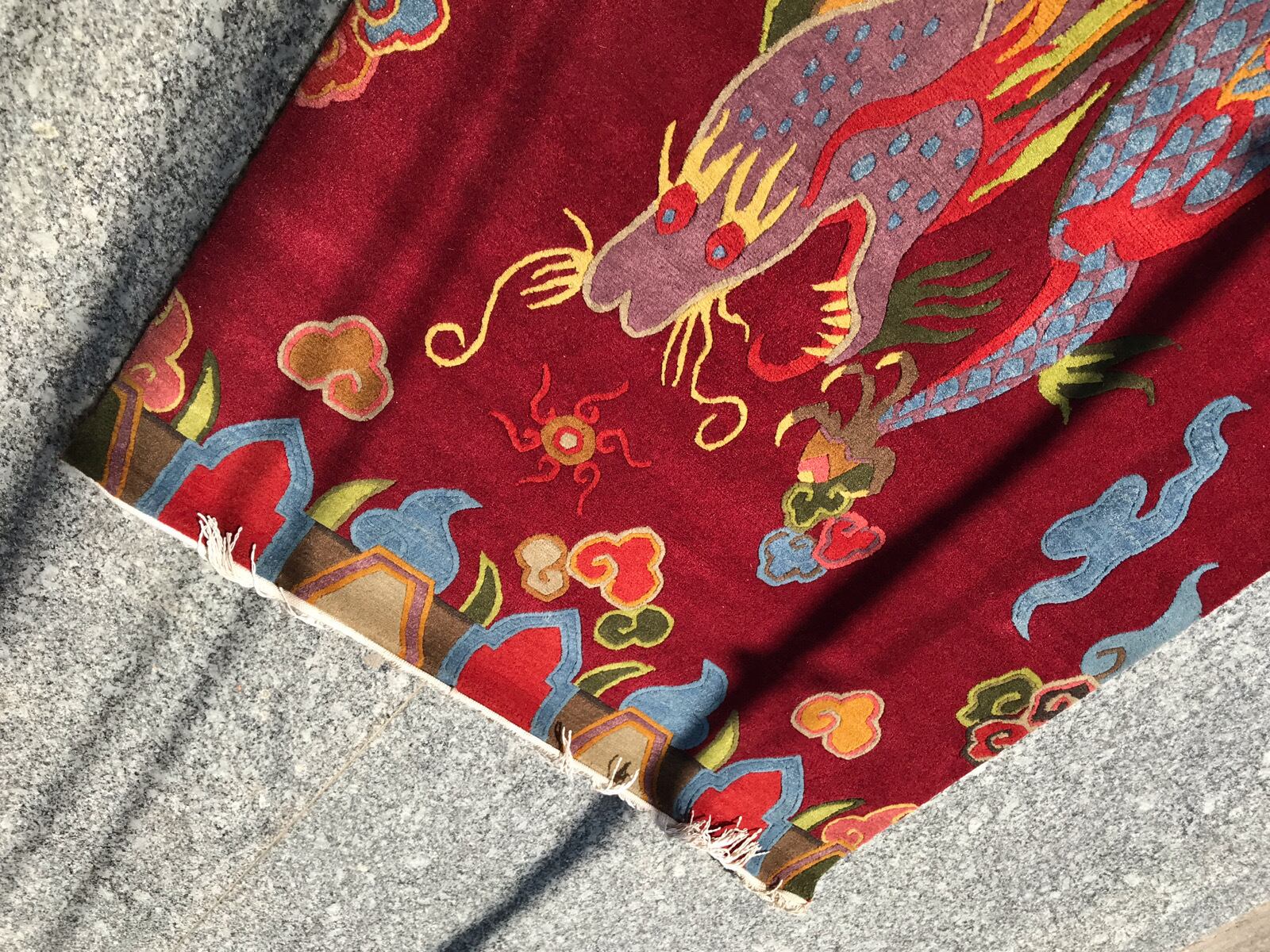 XL チベタンドラゴンラグ ★ TIBETAN DRAGON RUG WOOL ★ 100 KNOT ★ HANDMADE 【 特大 本物 ウール製 カーペット ヒマラヤンワインレッド 臙脂系 赤 - 龍柄 チベット絨毯 ネパール産 仏教 密教美術 ハンドメイド 手織り 高級絨毯 インテリア 産地直送 通販 フロアマット 】HIMALAYAN WINE RED