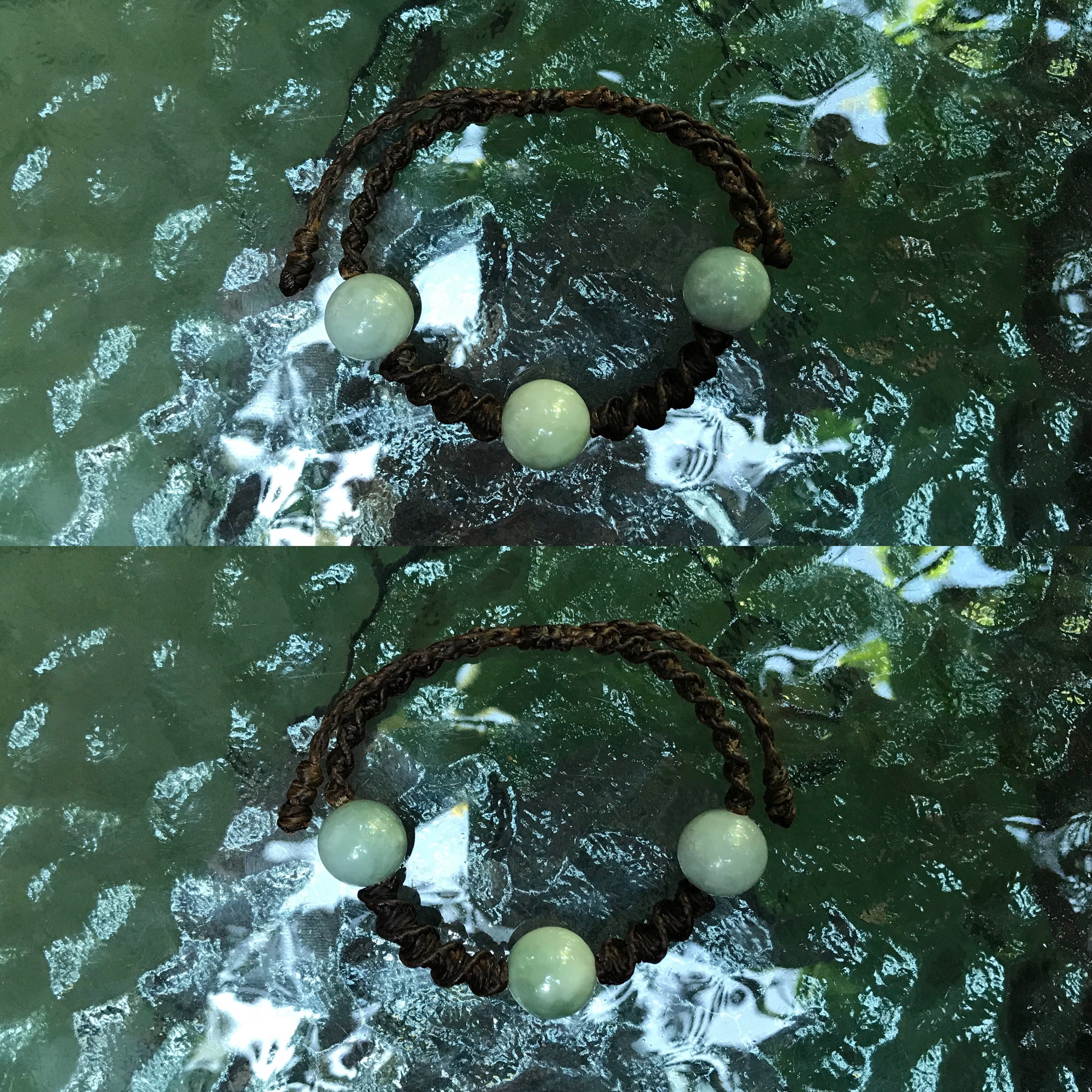 NU JOMON SERIES TRINITY - JADE BRACELET 天然翡翠 トリニティ ブレスレット 薄緑 ★ made in Myanmar, assembled in Thailand 【 ジェイド ブレスレット 本物 ミャンマー産 天然石 バングル ブレスレット 腕輪 パワーストーン ジュエリー アクセサリー エスニック 縄文 】 メンズ フリーサイズ | チベタンタイガーラグ チベット絨毯 AMUKURIUM - Handmade Tibetan Tiger Rug